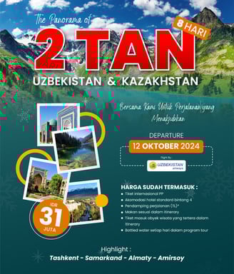 Perjalanan menikmati keindahan sejarah dan alam Uzbekistan dan Kazakhstan, dari warisan Islam di Tashkent dan Samarkand hingga panorama pegunungan Almaty.